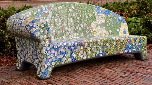 Samen met medebewoners uit de Belcrum een bank bekleden. Af en toe een uurtje per week samen werken aan een project. Wat mozaïeken, wat kletsen, een kopje koffie.